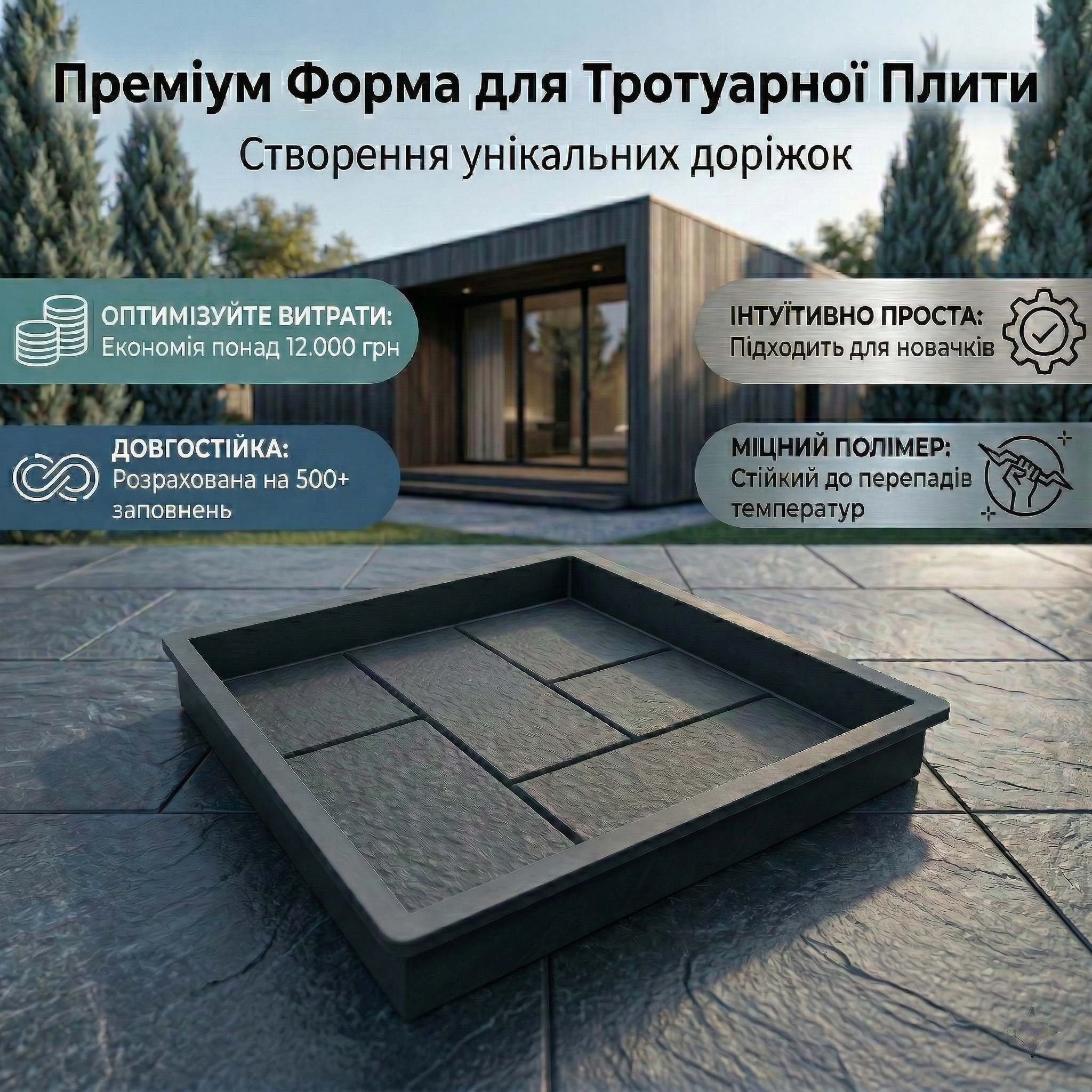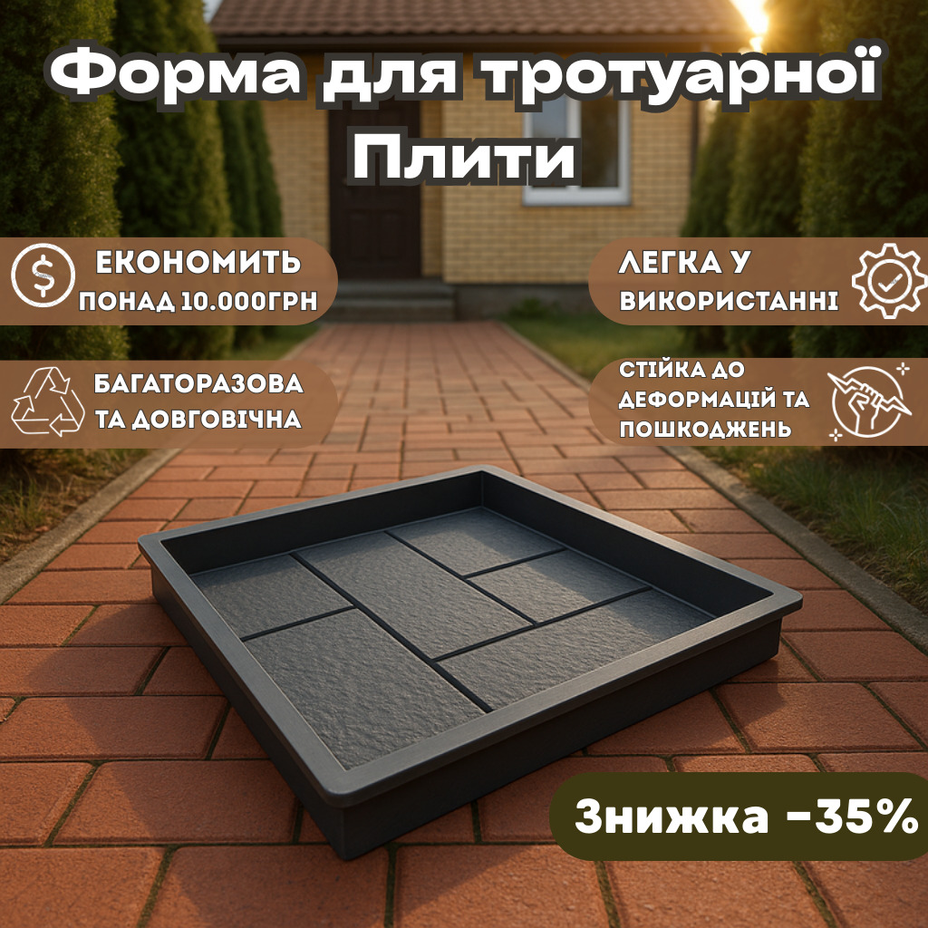 Перевага - це простота використання. Форма не потребує процесійних навичок будівництва, тому її легко використовувати навіть новачкам. Дачники порахували, що наша форма заощадила понад 10 000+ грн лише на початку будівництва.